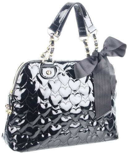 Betsey Johnson has been a tour de force in the fashion industry with her funky iconic style. You can be a part of the movement with this Mine & Yours dome satchel. It features all over quilted hearts in patent leather, gold accents including a heart lock zipper, and matching ribbon. Matching wallet sold seperately. Style: BH67815You will not be disappointed with